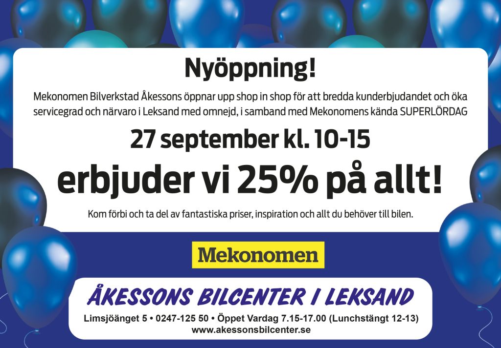 Med över 50 års erfarenhet i Leksand hjälper vi dig att köpa rätt bil, boka service i tid och ta hand om din bil på ett tryggt och enkelt sätt. Vi är auktoriserad Mekonomen bilverkstad & Hyundai märkesverkstad. Vi erbjuder både begagnade bilar i lager och en komplett bilverkstad – allt på ett ställe i Dalarna